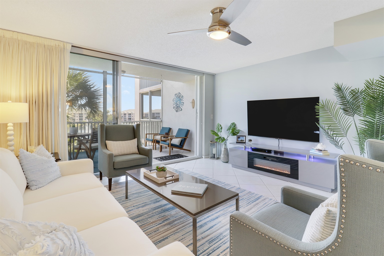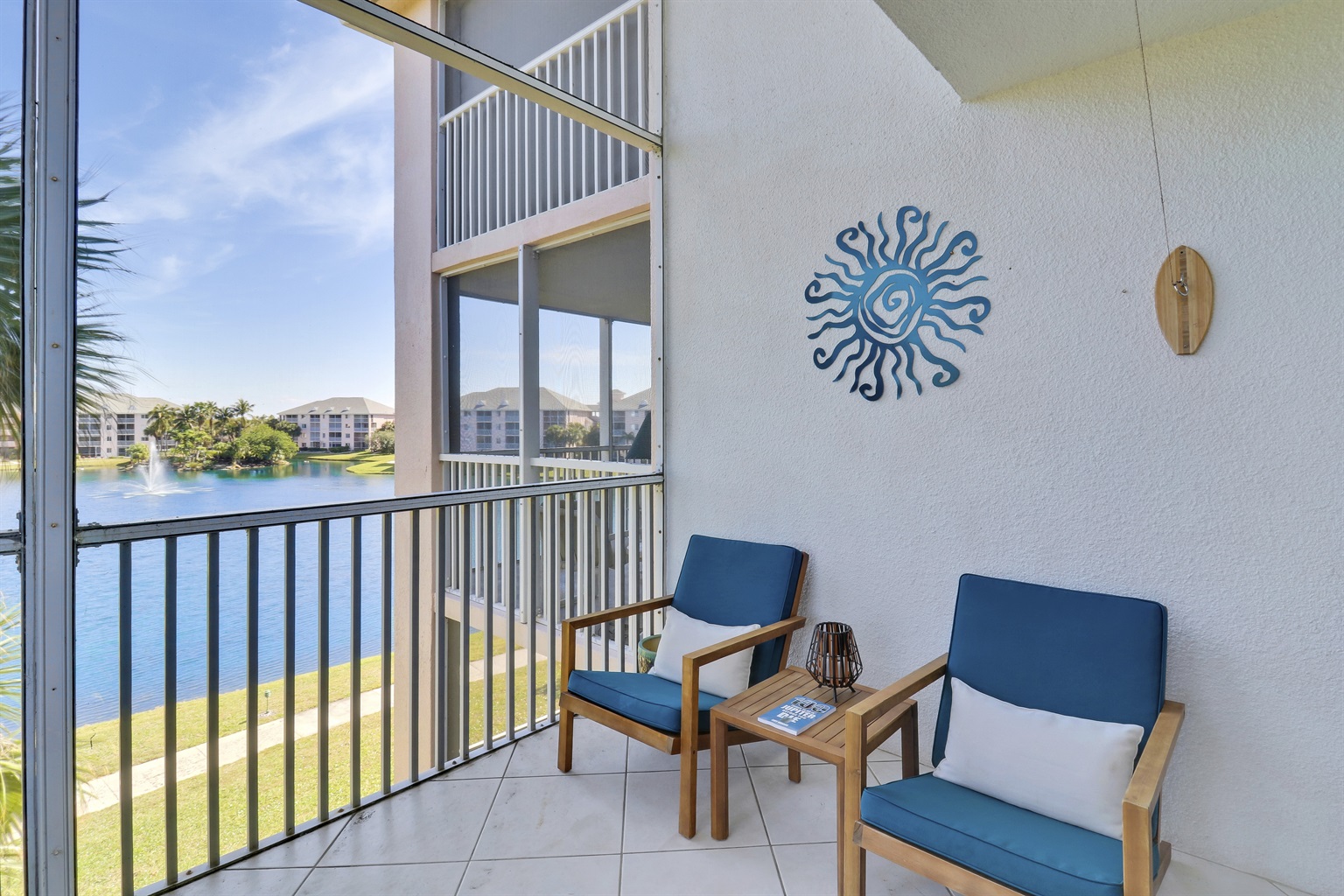 Endless Summer's balcony overlooks the lake and you can often hear people chatting on the walking path or at the pool, a tennis game in the distance and sometimes music from Twisted Tuna, when the doors are open.