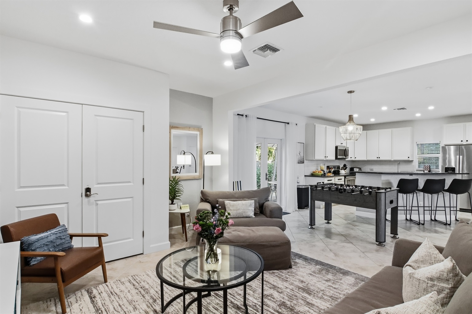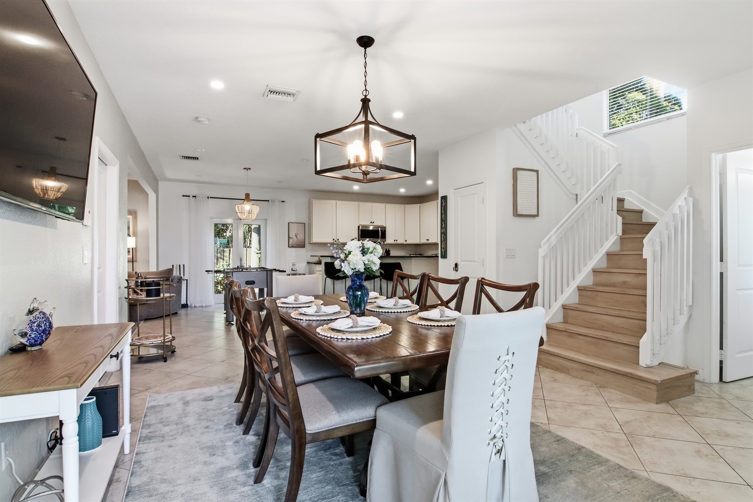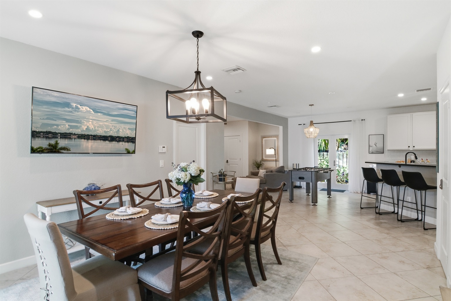 Remodeled, expanded living space, plush living room-new furnishings, new dining area to seat 8 comfortably, foosball table and more!!