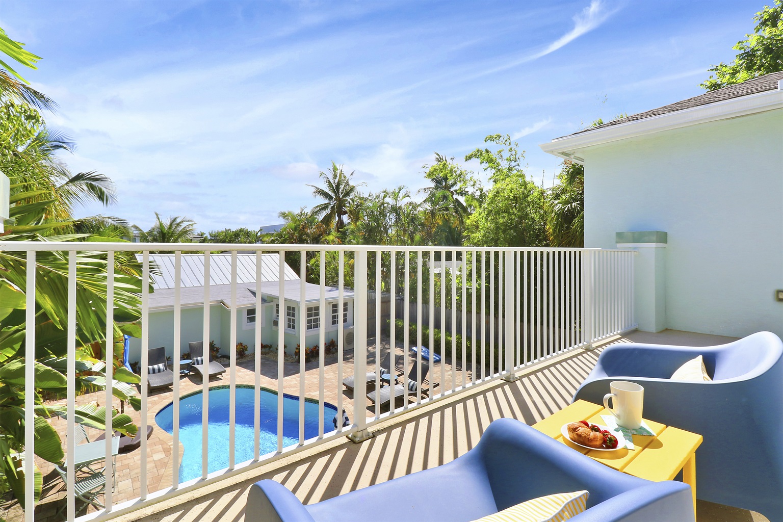 Paradise Breezes boasts 3 spacious bedrooms upstairs, 2 full bathrooms, a separate laundry room with a full size washer and dryer and a balcony overlooking the pool and courtyard.