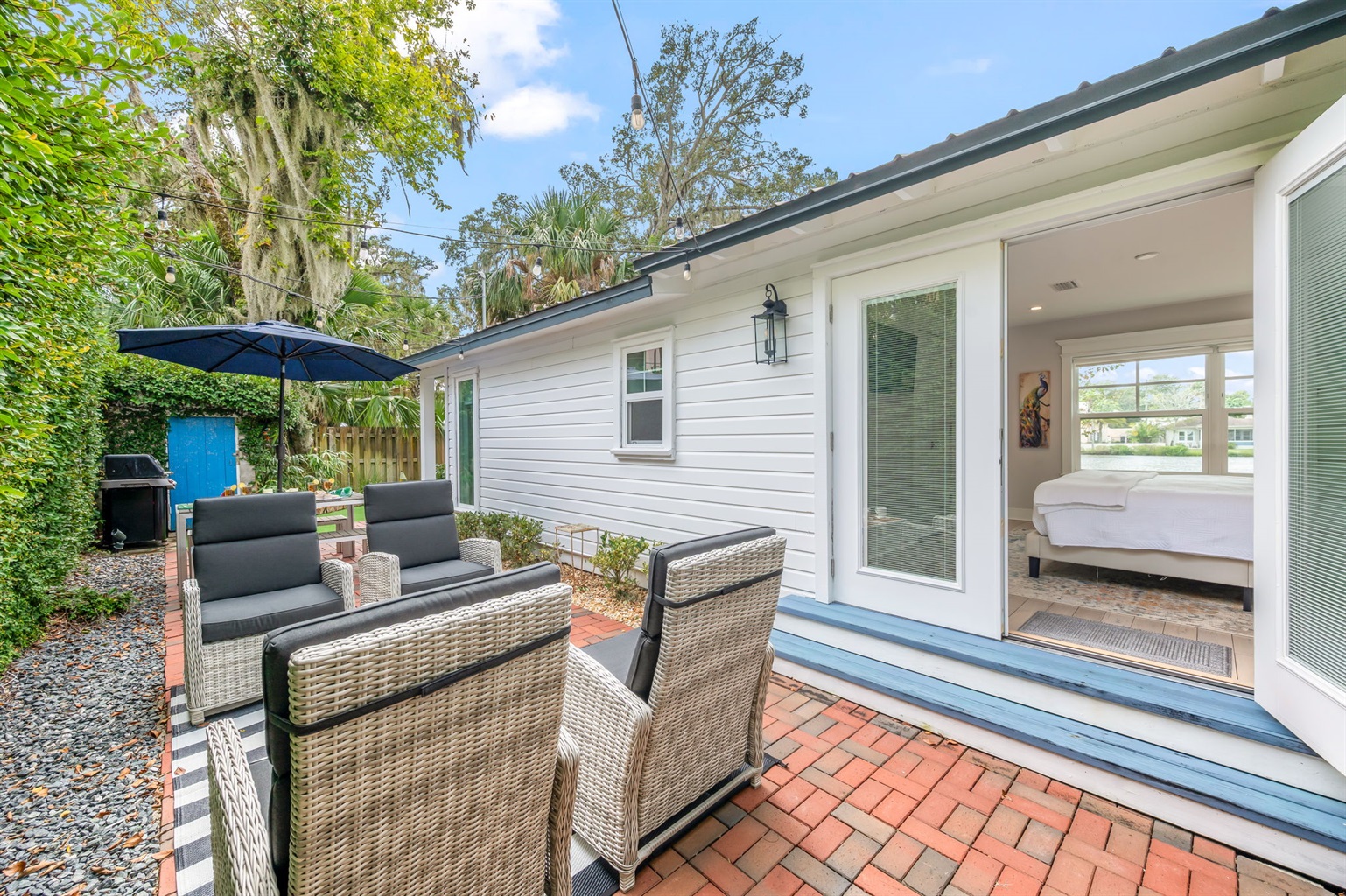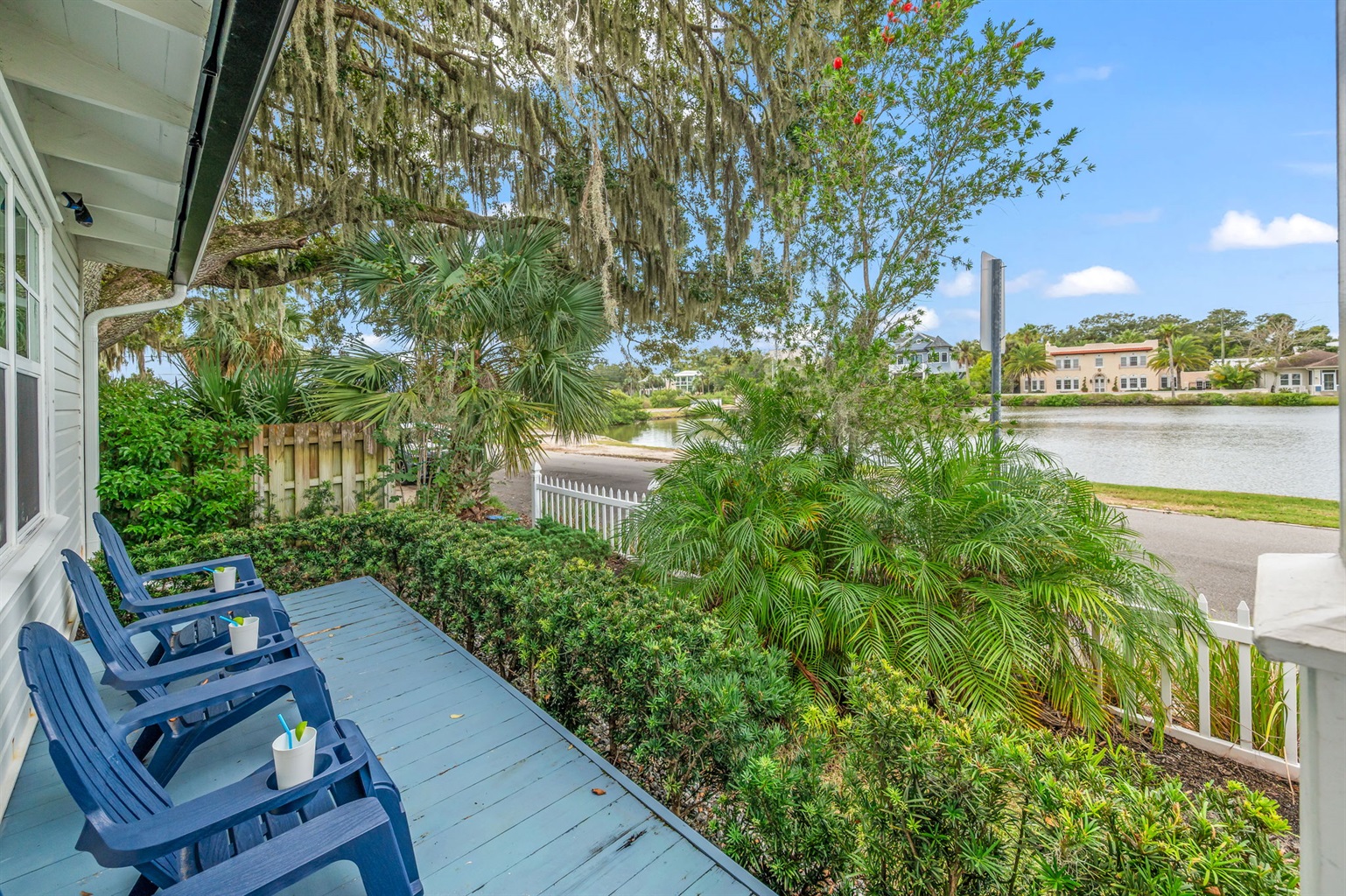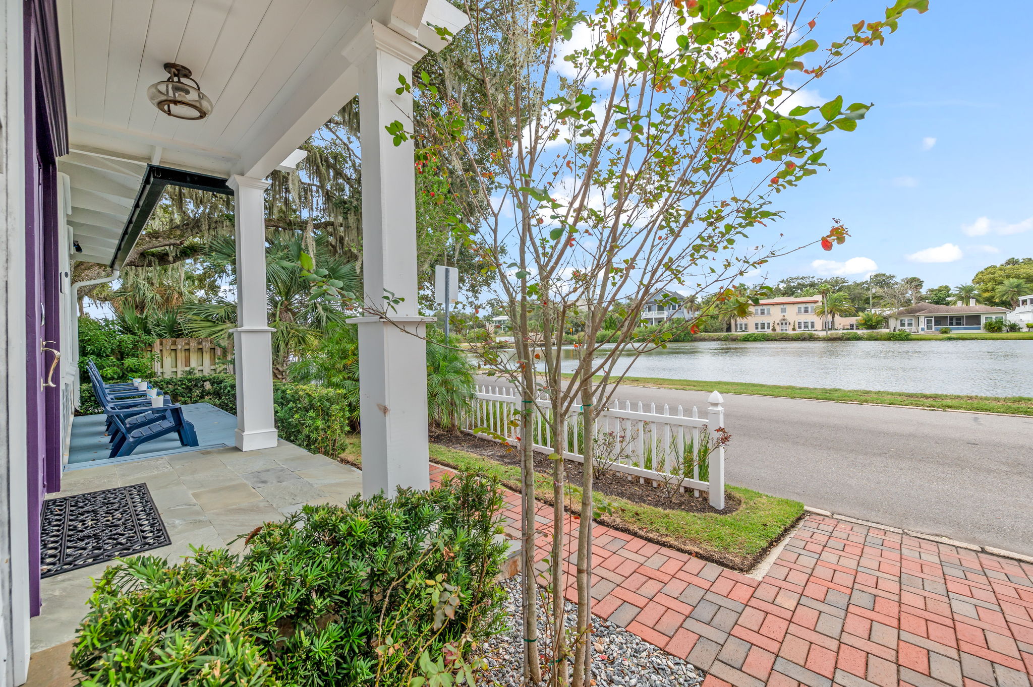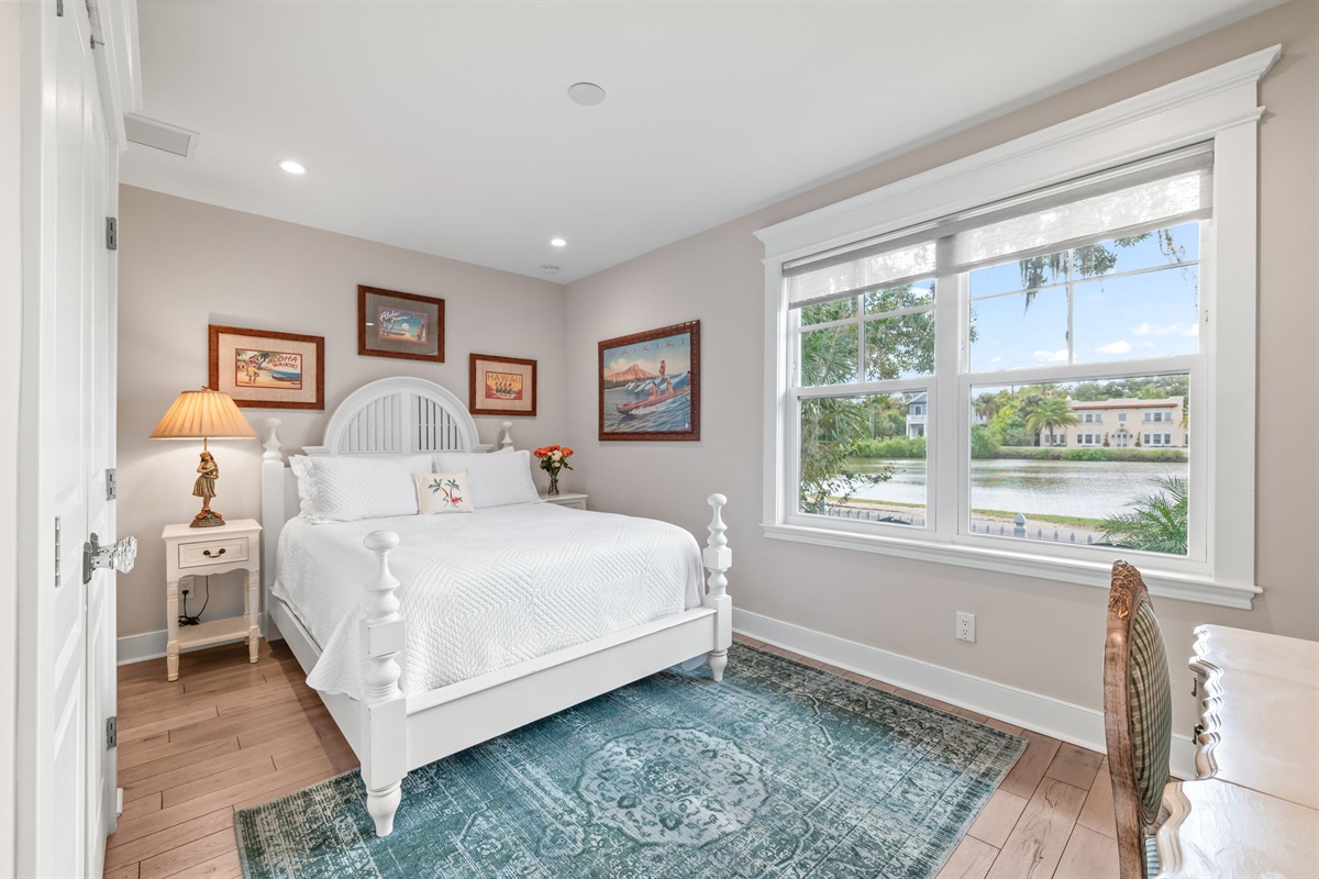 3 Bedrooms • 2 Bathrooms 2 Baths • Sleeps 3-6Experience the perfect blend of waterfront serenity, historic charm, and modern luxury at The St. George Cottage House. This exquisite 3-bedroom, 2-bath cottage home is perfectly situated with extensive water views and spectacular sunsets over Maria Sanchez Lake. Walk to historic downtown St. Augustine, Flagler College, top restaurants, museums, and attractions. Relax on the cozy front porch, fire up the BBQ, or enjoy the mini putting green and lounge area in the backyard.