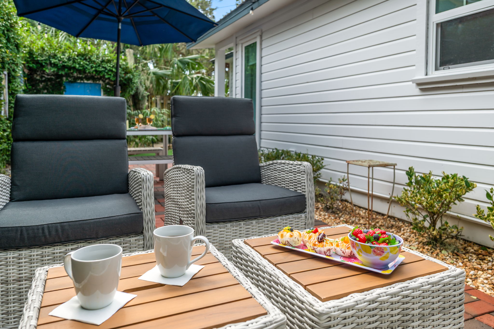 • Indoor and outdoor drinkware, plenty of dishes and drinkware, wine glasses, martini glasses